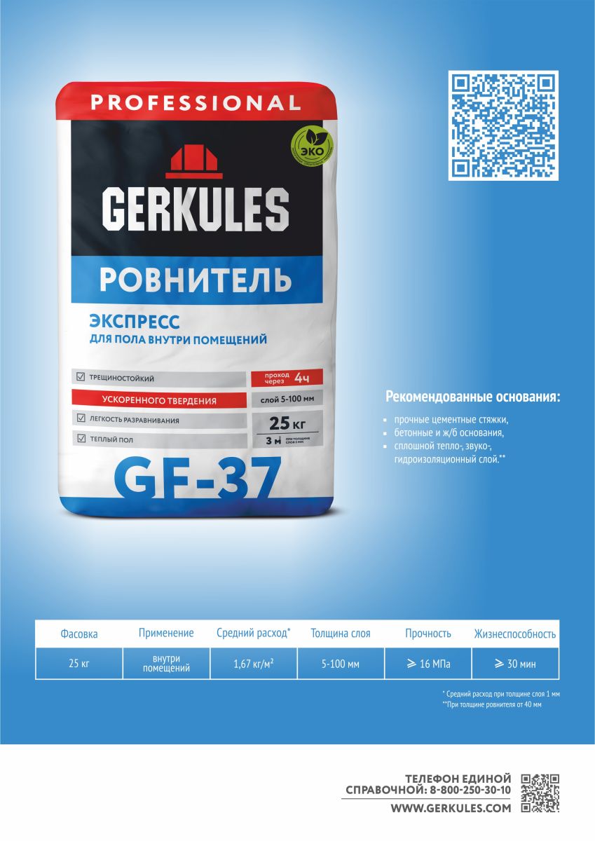Экспресс-ровнитель для пола быстротвердеющий Геркулес GF-37, 25 кг