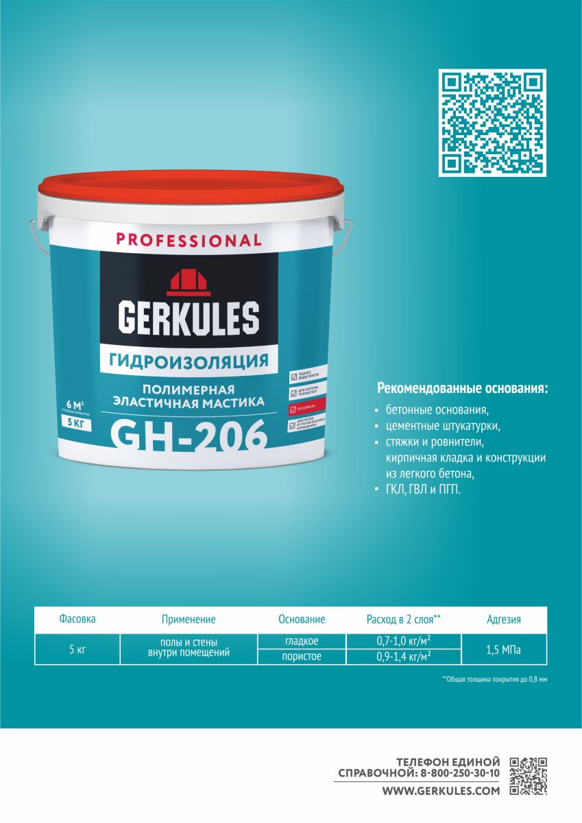 Гидроизоляция эластичная 5кг GH206 PRO Геркулес
