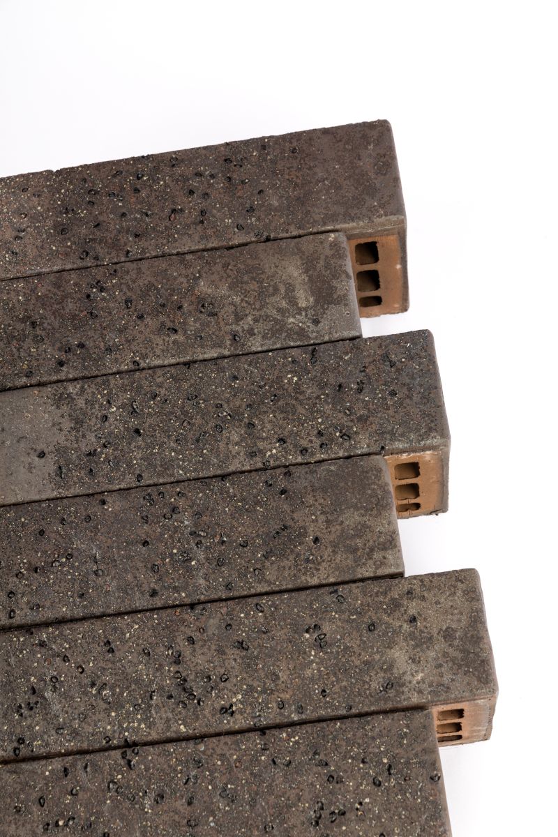 "Черное сокровище" - кирпич с шероховатой, полуматовой фактурой и точечными вкраплениями. Его пестрый цвет от темно-коричневого до глубоко черного, с мерцающими участками, словно извержение лавы, создает уникальную текстуру и атмосферу таинственности. Кирпич имеет вулканическую текстуру лава.