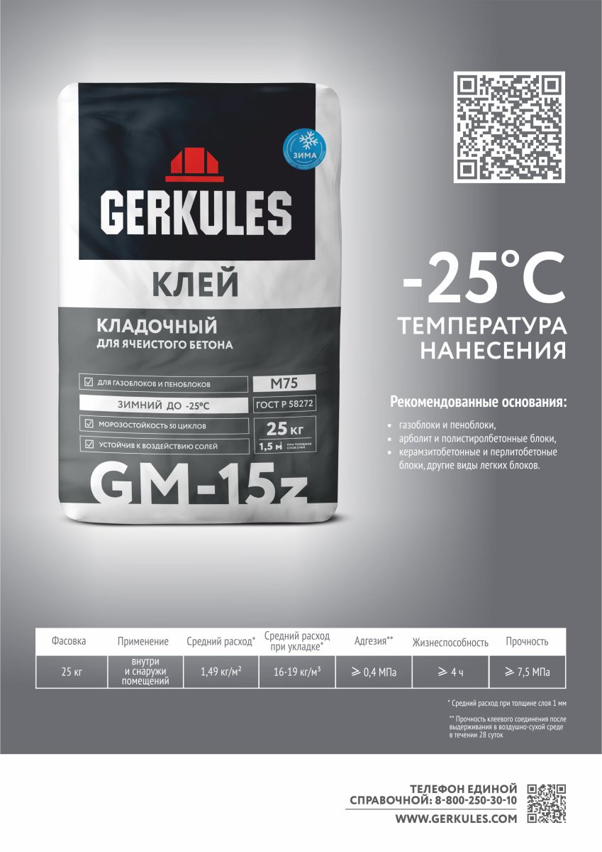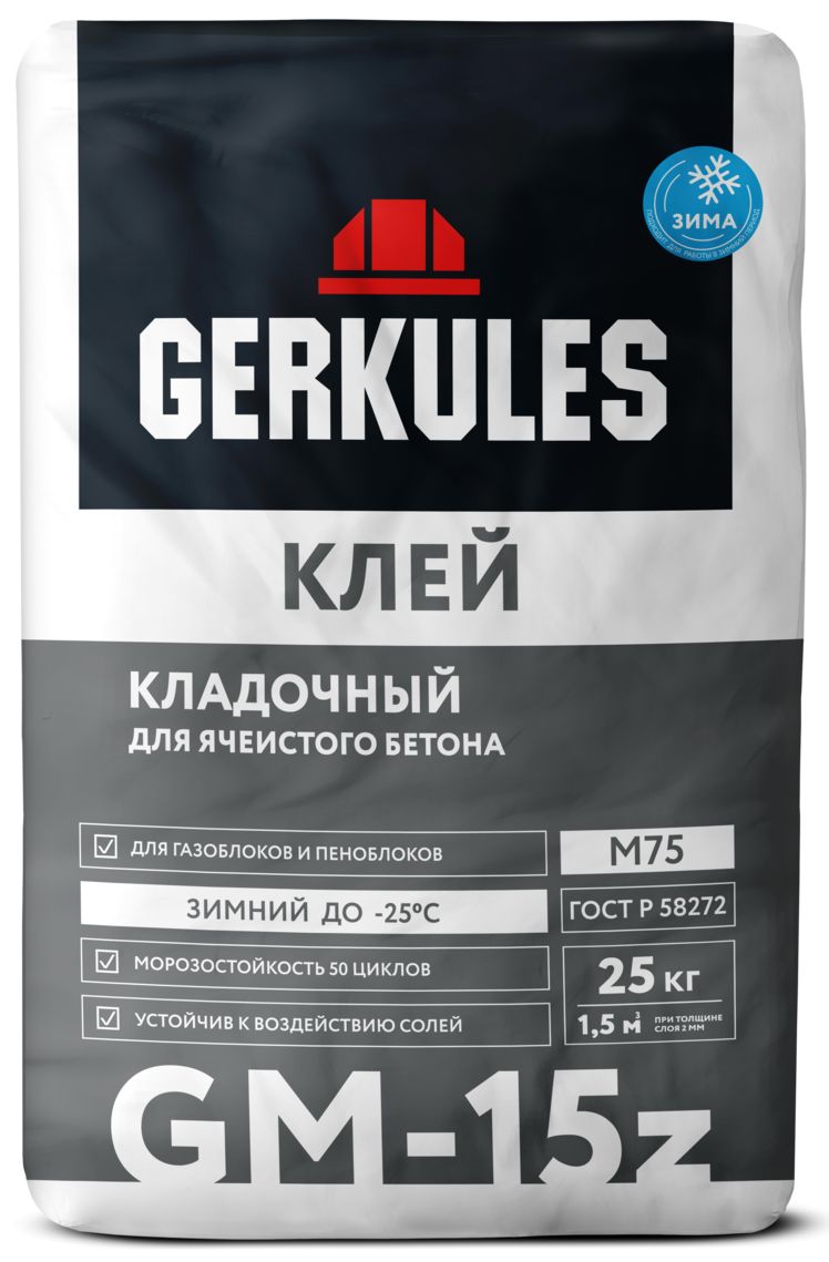 Клей д/ячеистого бетона 25кг зимний Геркулес GM-15Z