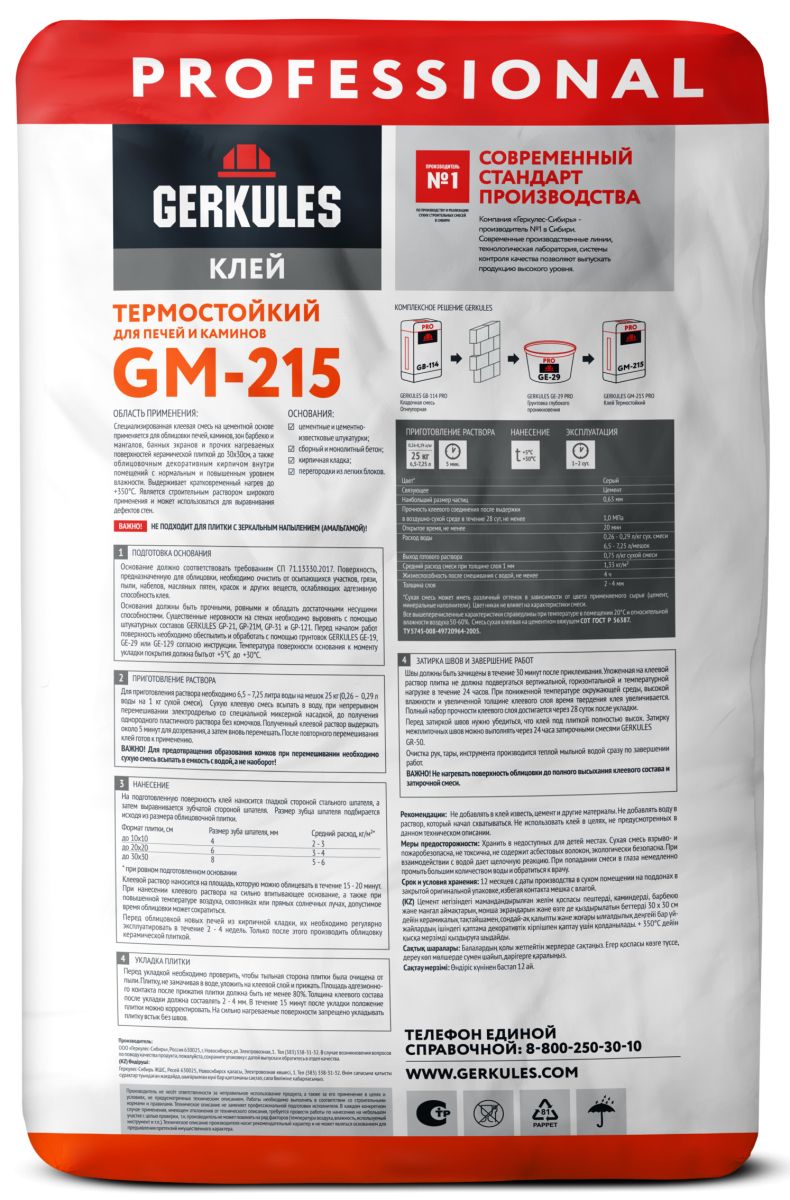 Клей для печей 25кг термостойкий Геркулес GM-215