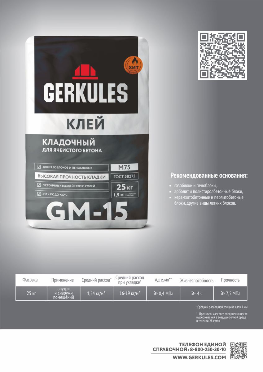 Клей для ячеистого бетона Геркулес GM-15, 25 кг