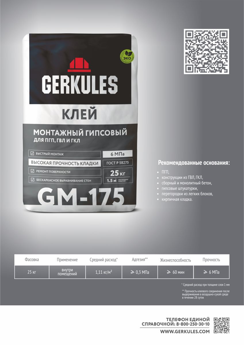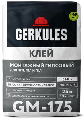Клей гипсовый 25кг для ПГП/ГКЛ GM175 Геркулес