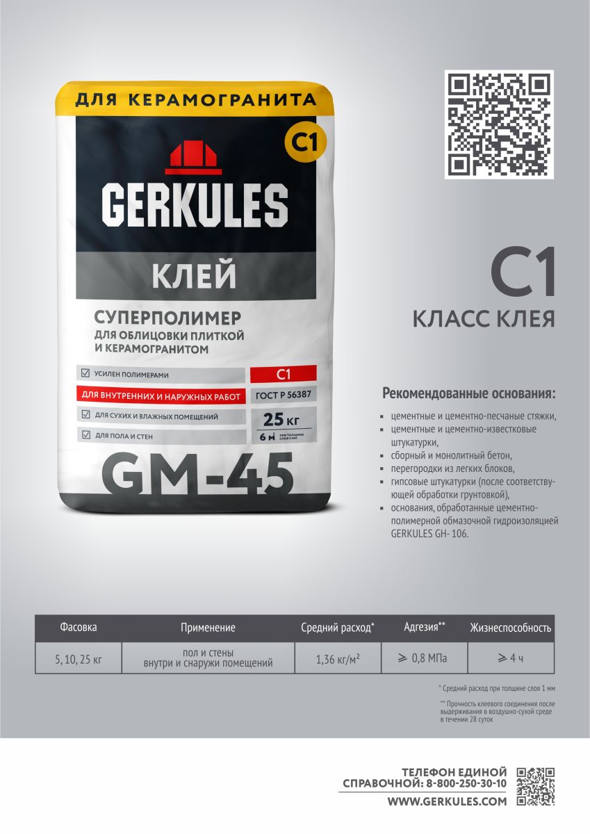 Клей суперполимер 25кг для кафеля GM45 Геркулес