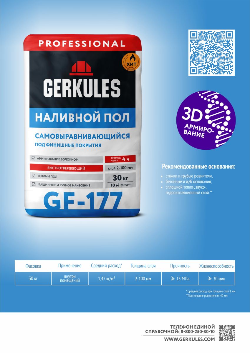 Пол самовыравнивающийся Геркулес GF-177 30 кг, быстротвердеющий