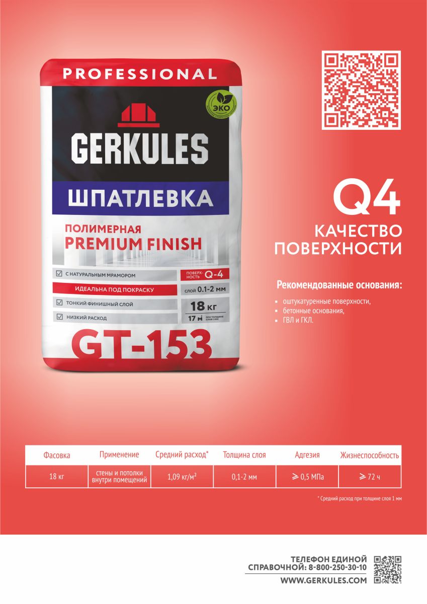 Шпатлевка 18 кг PREMIUM FINISH PRO полимерная GT-153 Геркулес