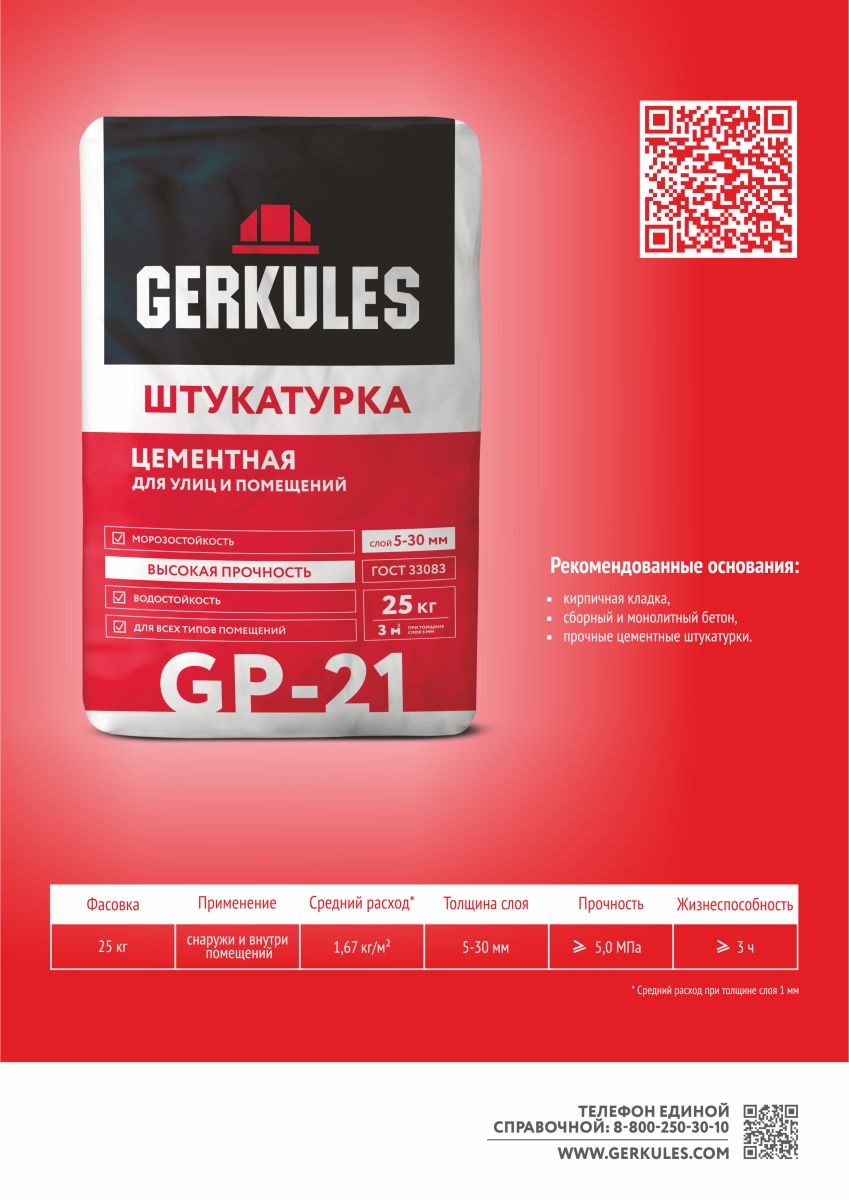 Штукатурка цементная влагостойкая Геркулес GP-21 25 кг