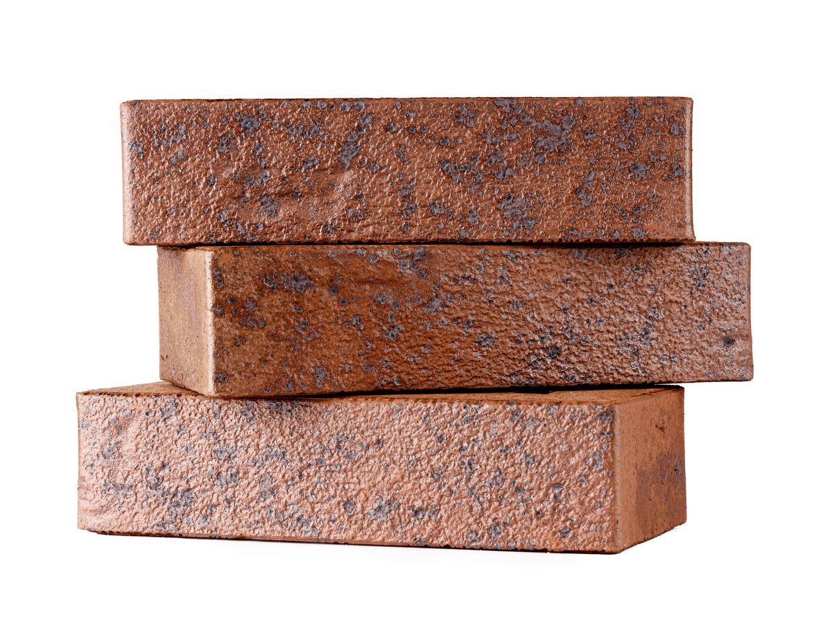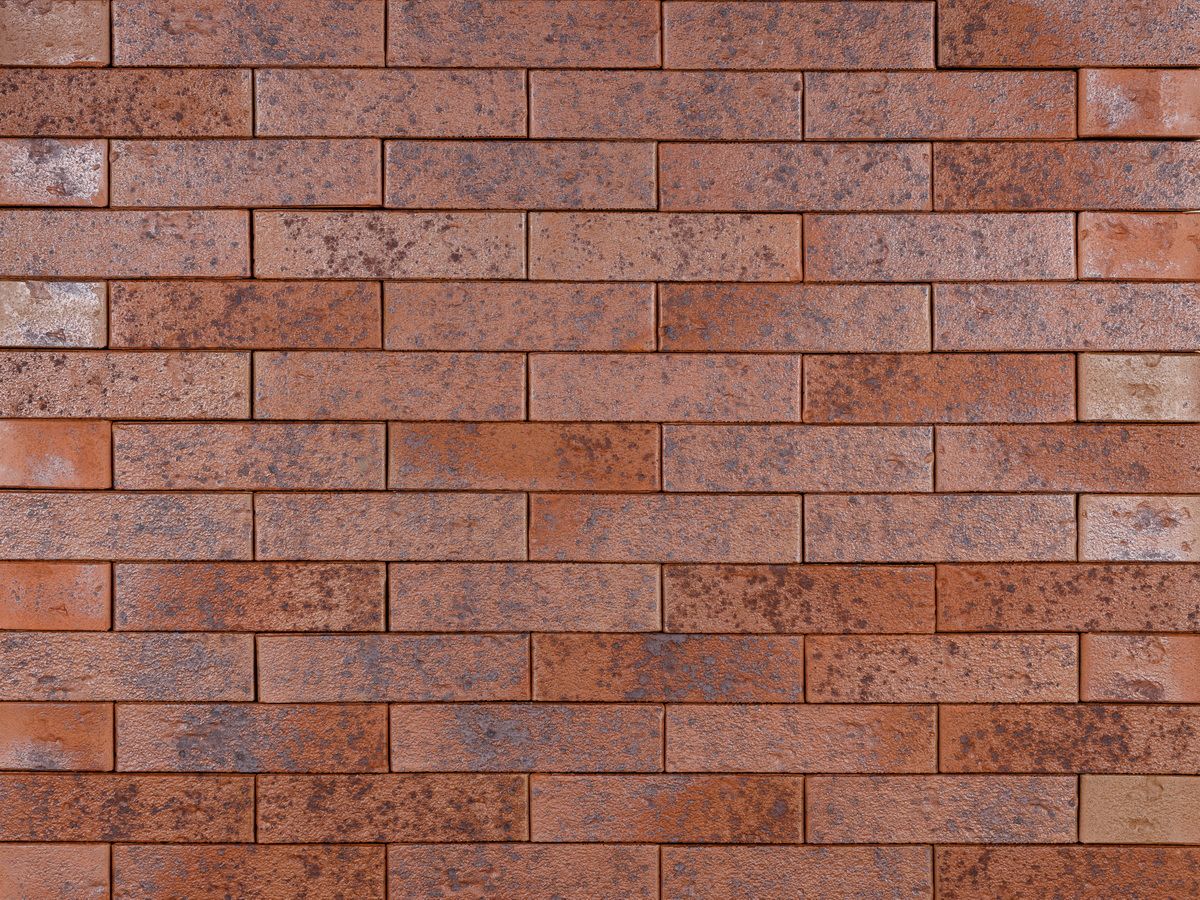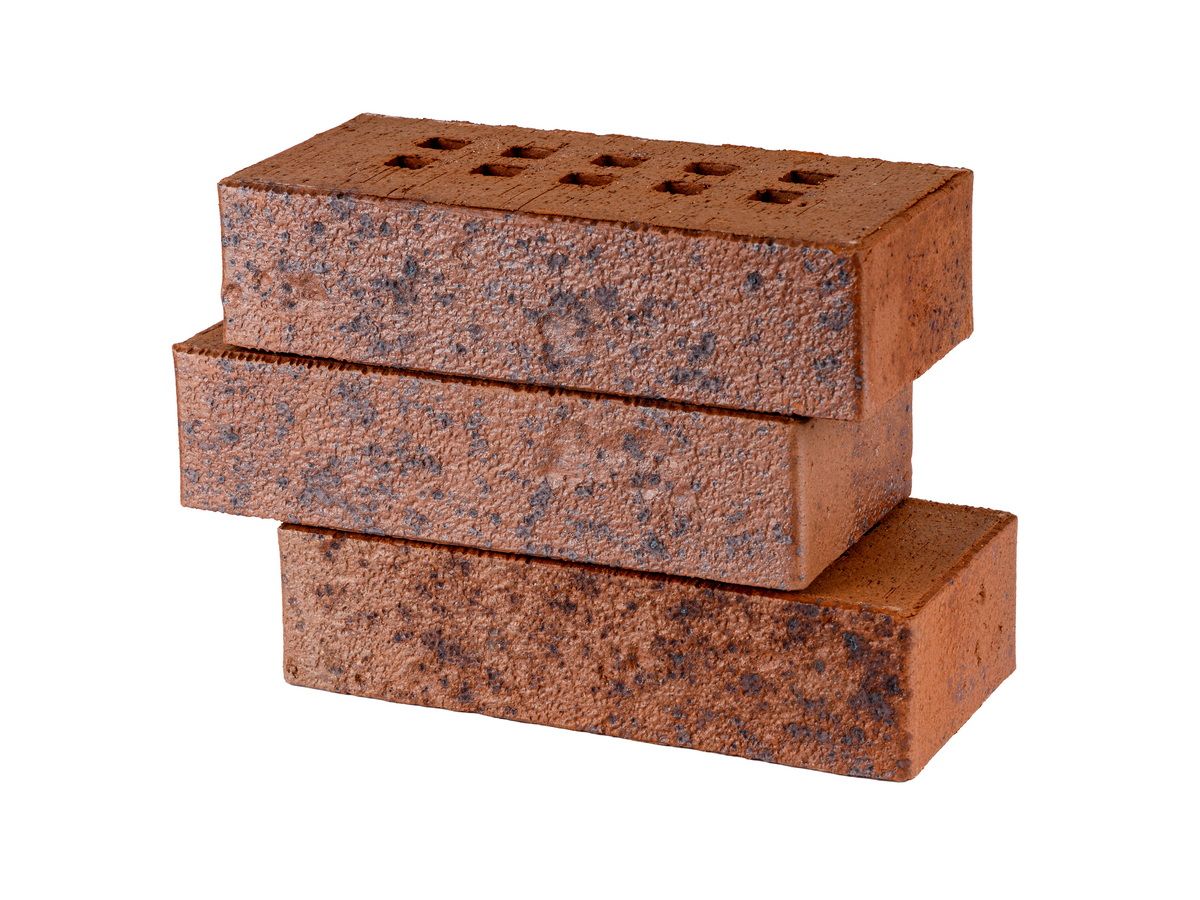 Клинкерный облицовочный кирпич ТОМСКЪ 1НФ красно-бордовый с насыщенным синим крапом.